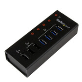 | Productbeschrijving | StarTech.com 4-poorts gevoede USB 3.0 hub met 3 speciale USB-laadpoorten (2 x 1 A & 1 x 2 A) - wandmonteerbare metalen behuizing - hub - 4 poorten |