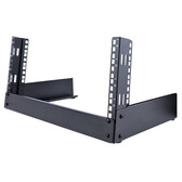 Dit open frame desktop rack biedt 4U opslagruimte voor de montage van kleinere A/V- en IT-apparatuur. Met dit data rack met 2 stijlen kunt u apparatuur met een fractie van de kosten van traditionele racks monteren. Het staande rack is ontworpen om te voldoen aan de eisen van EIA-310 rack montage standaarden en is gemaakt van robuust staal voor een stevige en veilige montageoplossing voor uw cruciale apparatuur.