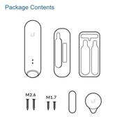 3x UP-Sense, Schroevenset, Montagebeugel, Magneet, Reserve Klittenband. (Let op: batterijen niet meegeleverd)