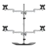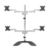 Vergroot uw productiviteit en pas uw werkplek aan met deze viervoudige monitor standaard, waarmee u vier schermen boven uw bureau kunt plaatsen. Geniet van de optimale kijkhoek met vier scharnierende monitor armen, die een groot bewegingsbereik bieden. De vrijstaande basis biedt u de flexibiliteit om de optimale schermconfiguratie voor uw werkplek te kiezen. Met deze sterke viervoudige monitor standaard, gemaakt van aluminium en staal, kunt u uw werkplek inrichten voor optimale productiviteit. De monitorarm ondersteunt vier voor VESA montage (75x75, 100x100 mm) geschikte schermen, elk tot 32", met een maximumgewicht van 8 kg per scherm. Creëer een werkstation met meerdere schermen die het best voor u werkt. Profiteer van efficiënt werken op vier schermen voor financiële analyses, webcodering, bewerken van video''s of vele andere toepassingen. Kies uw geheel eigen configuratie door de schermhoogte, -positie en -kijkhoek aan te passen voor een ergonomische werkplek. De draaiende armen bieden maximale flexibiliteit bij het kijken. Plaats uw schermen op de ideale hoogte. Stel de schermhoogte gewoon in langs de 86,4 cm stang. Lijn uw schermen uit met behulp van de microverstelfunctie. Met de viervoudige monitorsteun kunt u de armen tot 42,2 cm buigen en uw schermen in de ideale stand zetten.Kantel uw schermen +90°/-40° en draai deze 360°.Roteer uw schermen 360° voor staand of liggend formaat.