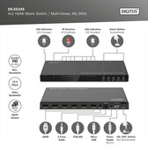 Zum Warenkorb hinzufügen Zur Wunschliste hinzufügenDe DIGITUS® 4x2 HDMI Matrix Switch/Quad Multi-Viewer maakt eenvoudig wisselen tussen tot maximaal 4 HDMI-bronnen en 2 afspeelapparaten mogelijk, verdeel uw media-inhoud afzonderlijk. Wissel gemakkelijk tussen signaalbronnen via de afstandsbediening, op he