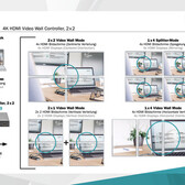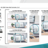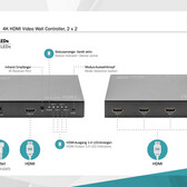 Met de DIGITUS® Video Wall Controller 2x2 kun je in totaal 4 tv's of monitoren met HDMI-aansluiting omtoveren tot een grote videowall. De controller maakt het mogelijk om een 4K-signaal met hoge resolutie te verdelen over 4 Full HD-schermen, zodat er een