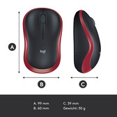 Toevoegen aan winkelwagen Aan verlanglijst toevoegenLogitech LGT-M185R, Ambidextrous, Optisch, RF Draadloos, 1000 DPI, Zwart, Rood